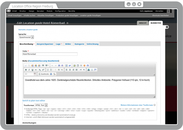 Alle Inhalte können von Film Locations mittels eines modernen, modularen Content Management Systems Drupal selbst verwaltet werden.